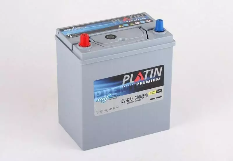 Аккумулятор PLATIN Premium 42Ah 12V тонкая клемма предназначен для монтажа на дизельные мотоблоки и мототракторы мощностью 6-24 л.с. Кислотный АКБ относится к необслуживаемым, полярность модели L+.. Для удобства переноски модель дополнена ручками. Данная модель аккумулятора оснащена специальным прибором, который измеряет и показывает степень заряженности батареи. Встроенный индикатор заряда находится на лицевой (верхней) стороне устройства и похож на глазок – посмотрев на него, владелец быстро понимает, что всё в порядке либо необходима подзарядка.Свинцово-кислотный АКБ PLATIN Premium 42Ah 12V тонкая клемма имеет габариты 187 * 127 * 227 мм (Д*Ш*В). Рабочая емкость аккумулятора 42Ah выдает пусковой ток объемом 370En. Модель входит в линейку необслуживаемых батарей с левосторонней плюсовой полярностью. Предназначена для установки на дизельные мотоблоки и мототракторы мощностью 6-24 л.с. (и бензиновых двигателей с объемом до 1.3л.)