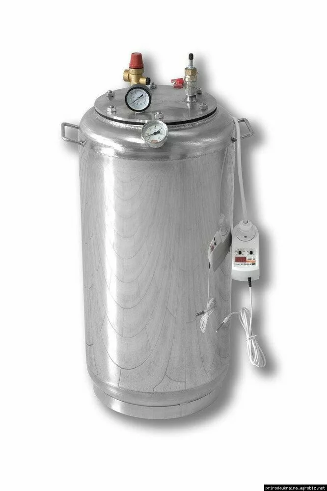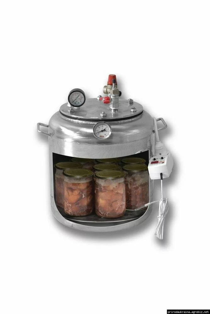 Гибридный автоклав для домашнего применения. Нагрев осуществляется от открытого огня и электричества на 21 банок по 1.л и 32 банки по 0.5 л