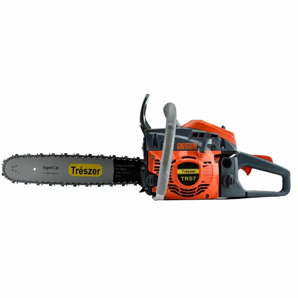 Бензопила цепная TRESZER TRS7 подойдет для выполнения тяжелых профессиональных работ в сочетании с малым весом и невысокою ценою делают эту модель универсальным инструментом для использования в промышленности и домашнем хозяйстве. Низкий вес и вибрация позволяют работать бензопилой долго и с удобством.