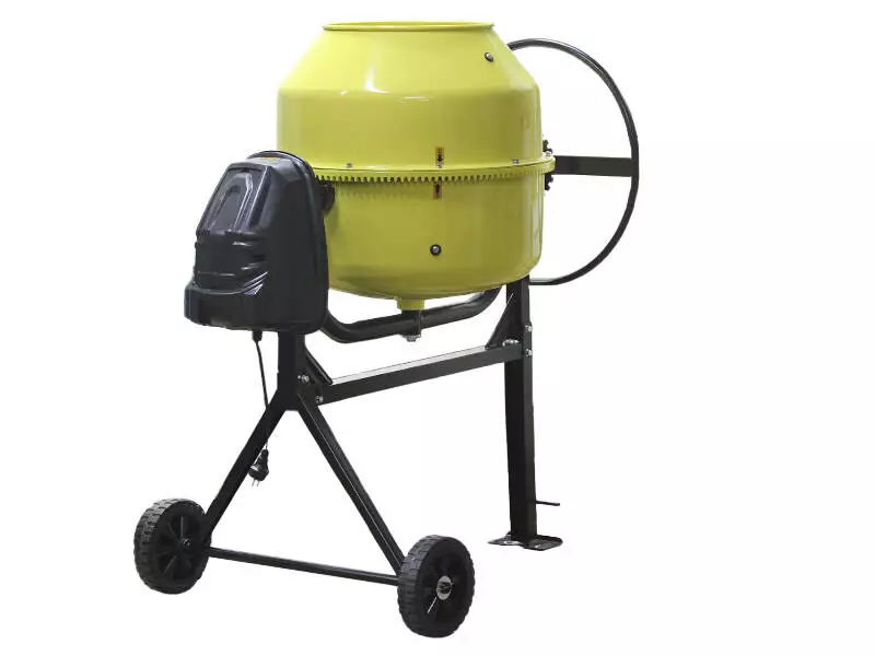 - Бетономешалка ТАТА 200 л имеет колеса, что облегчает её перемещение и транспортировку на стройплощадке.