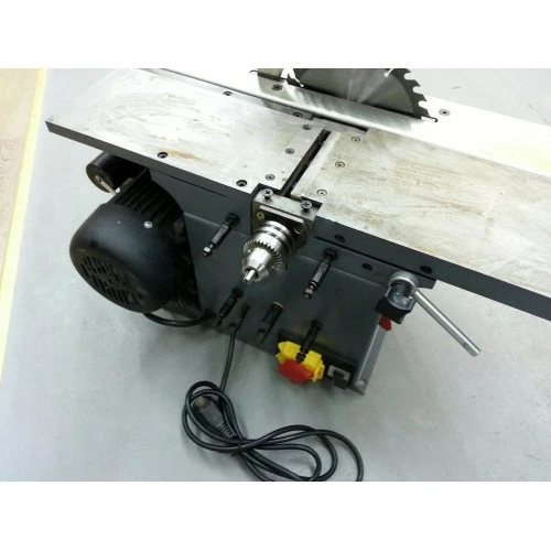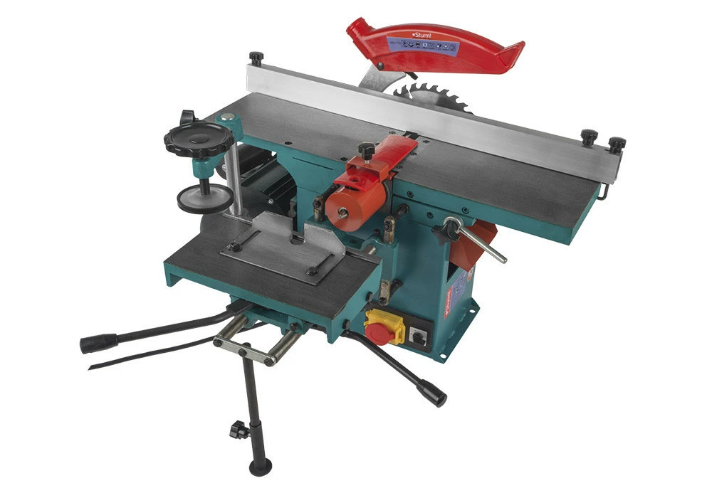 Сочетает в себе функции: строгания, пиления, сверления, фрезеровка и т.д. Рейсмусование на рабочем столе происходит как на профессиональном станке, заготовка продвигается к ножевому валу с помощью механизма подачи. Строгание выполняется следующим образом: глубина обработки выставляется путем занижения высоты подающего стола относительно приемного, подача осуществляется вручную.