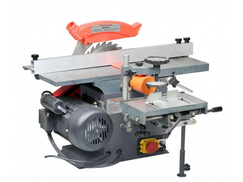 Комбинированный станок деревообрабатывающий ЭНЕРГОМАШ ДМ-19150 предназначен для обработки заготовок из дерева и его производных: строгания, продольного и поперечного пиления (пильный станок), сверлильно-пазовые операции (сверлильно-долбежная машина). Подойдет для столярных работ в производственных цехах, хотя его можно использовать в бытовых условиях. Он незаменимый помощник на мебельных производствах.