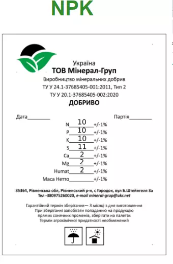 Добриво NPK(S) 10:10:10(6)+13CaO+11MgO+2 гумат калію-це запорука вашого урожаю та значна економія ресурсів.