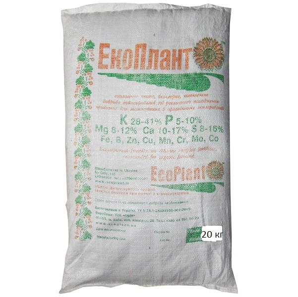 Основою добрива Екоплант є макро- (калій, фосфор, магній, кальцій, сірка) та мікроелементи.