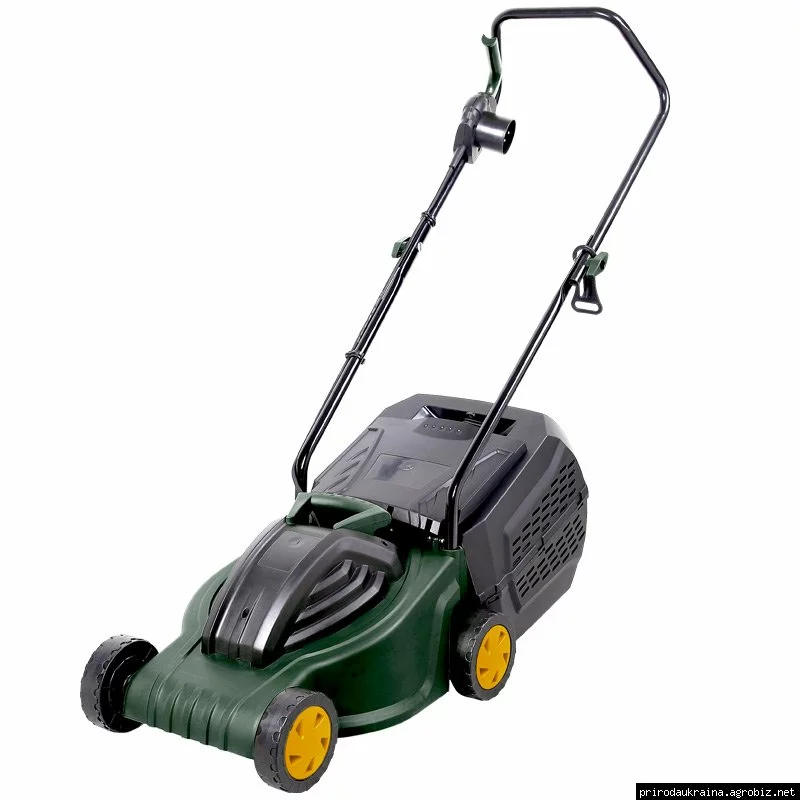 Очень удобная небольшая и простая в эксплуатации электрическая газонокосилка с пластиковым травосборником