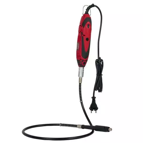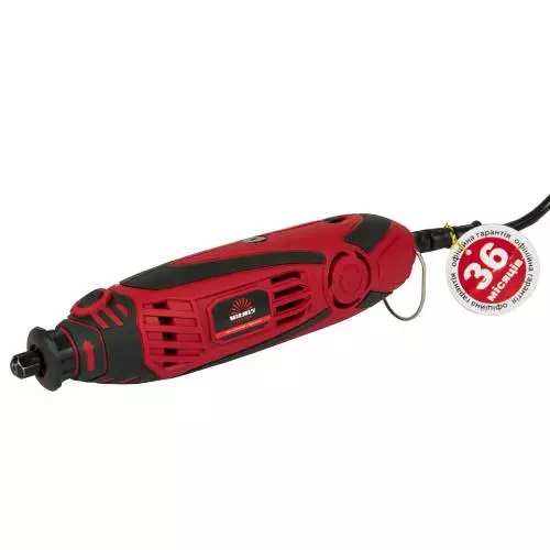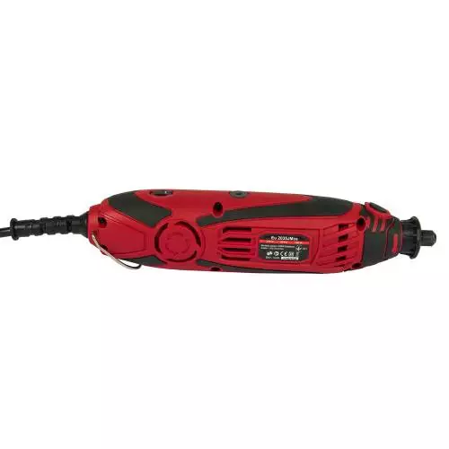 Важливою особливістю даного електроінструменту є велика швидкість обертання холостого ходу, що забезпечує відмінну продуктивність і якість роботи. Швидкість обертання холостого ходу регулюється колесом-регулятором в межах 10000-35000 об / хв. Велика швидкість обертання дозволяє виконувати точні роботи. Пристрій оснащений спеціальною кнопкою, яка при необхідності швидко зупинить шпиндель. Для надійної фіксації робочих насадок використовуються цанги: 1,6; 2,4; 3,2 мм.