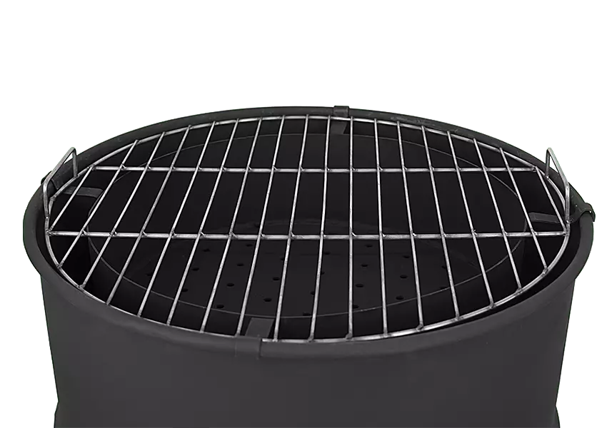 Гриль бочка довольно многофункциональна: большая решетка с пищевой нержавеющей стали, диметром 56 см, позволит приготовить стейки, крылышки, овщи, рыбу гриль для большого количества желающих отведать вкусности; если на угли насыпать немного щепы для копчения в процессе приготовления, то продукт получится с приятным ароматом копчености; убрав решетку можно разместить шампура с мясом и приготовить традиционный шашлык.