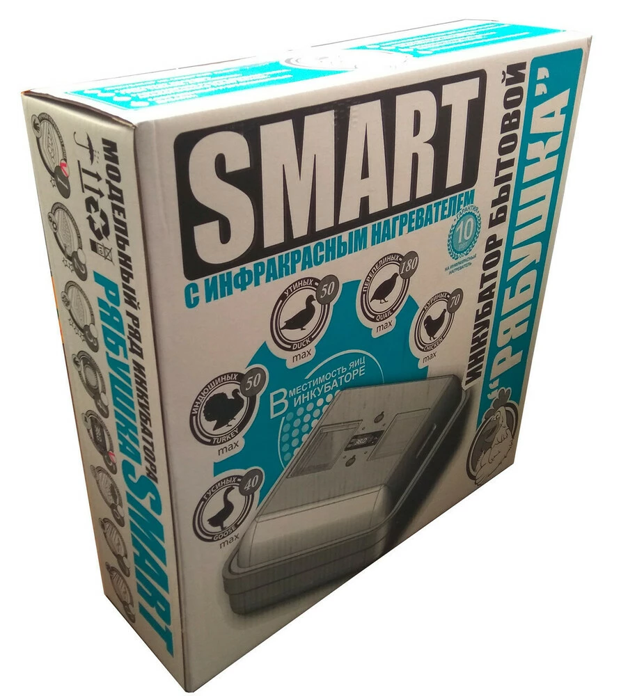 Инкубатор бытовой Рябушка Smart на 70 яиц с аналоговым терморегулятором и механическим переворотом- это современное инкубационно-выводное устройства украинского производства. Высокое качество исполнения и комплектующих делают его простым и надежным в управлении, а это обеспечивает высокую выводимость цыплят.