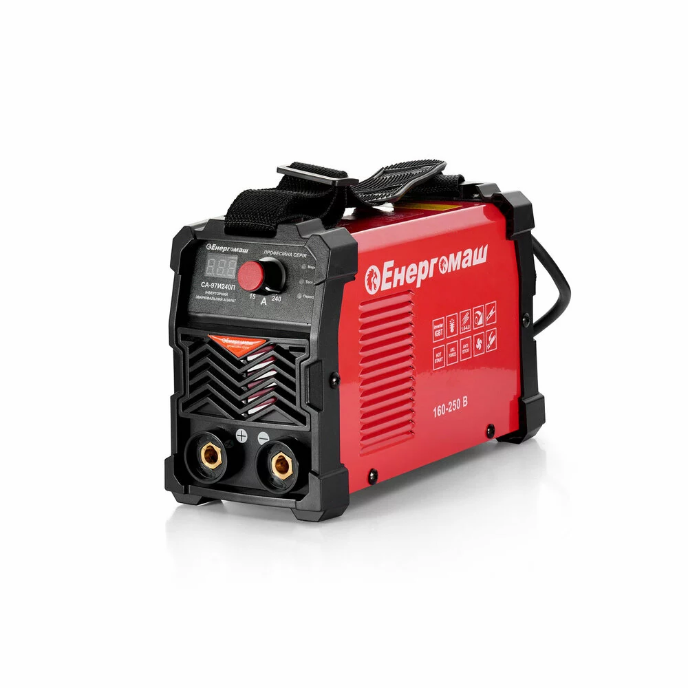 Інвертор зварювальний Енергомаш СА-97І240П є потужним інструментом для побутового використання. Апарат має широкий діапазон зварювання і працює з електродами товщиною від 1,6-4 мм. Пристрій відрізняються невеликою вагою та зручними габаритами, водночас демонструючи високу продуктивність із робочим циклом 60%. Діапазон зварювального струму складає від 15 до 240 А. Точність налаштування струму контролюється за допомогою цифрового дисплея. Експлуатувати інвертор рекомендується за температури -10 - 40 С.