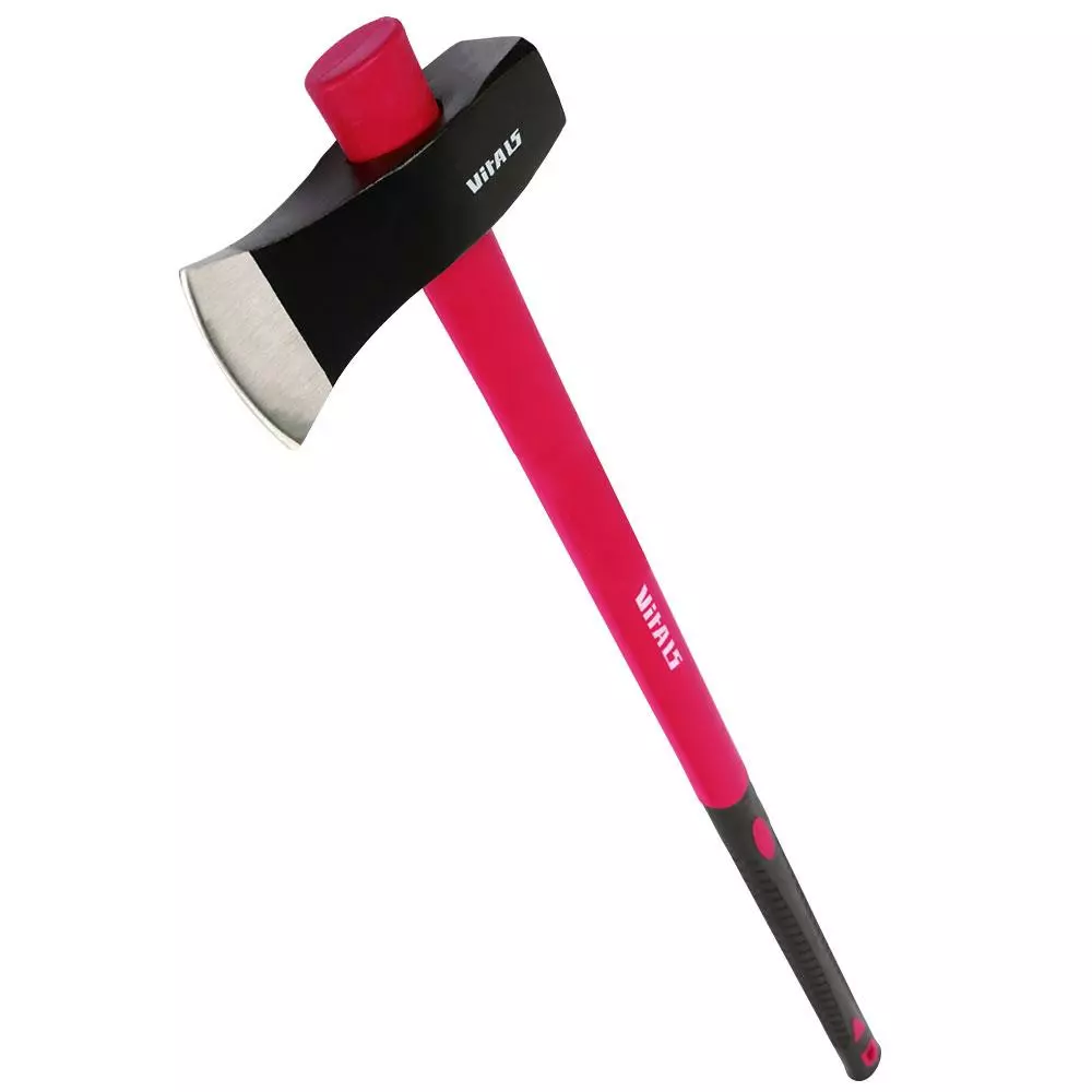 Рукоять изготовлена из легкого и прочного фибергласа, а резиновые вставки на ней не дают топору скользить в руке даже в дождливую погоду.