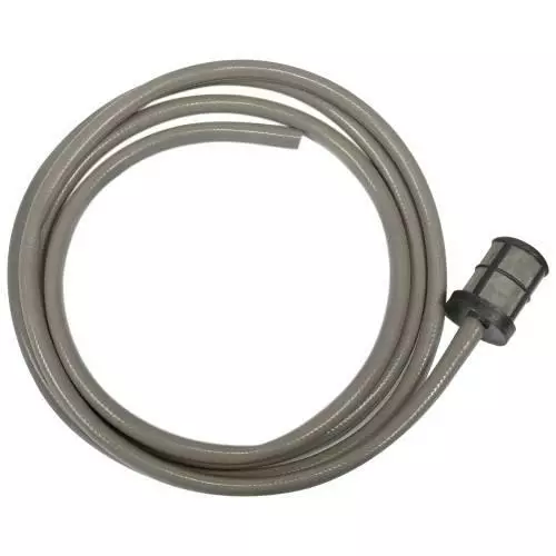 Комплект подключения мойки высокого давления к открытой емкости состоит из двух элементов: армированного пластикового шланга и присоединенного к нему объемного цилиндрического входного фильтра.