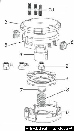 Косильная головка КГ-1221-особенная модель.Она имеет система отпуска лески с нажимая