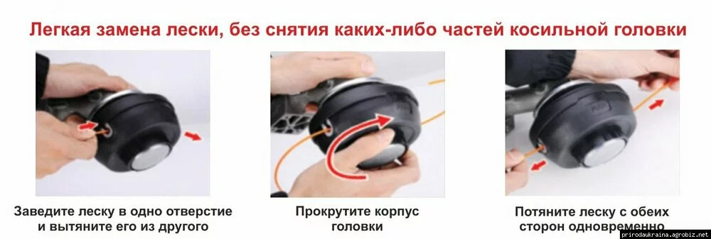 - Леска заправляется без раскрывания частей, это легче и меньше нарушаются крепления