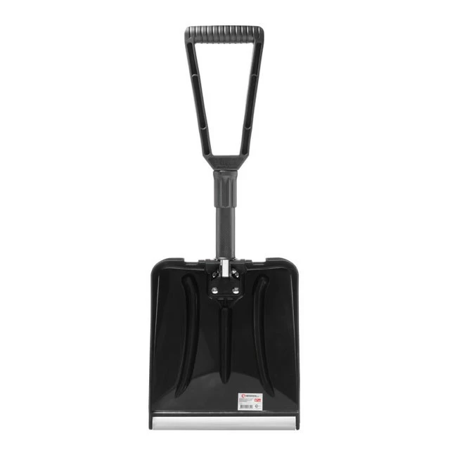 Лопата виготовлена з алюмінію та морозостійкого пластику, не втрачає свою міцність при низьких температурах. Складна конструкція робить її дуже компактною, тому вона стала корисним та зручним супутником в автомобілі.