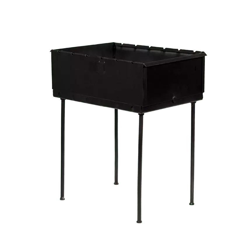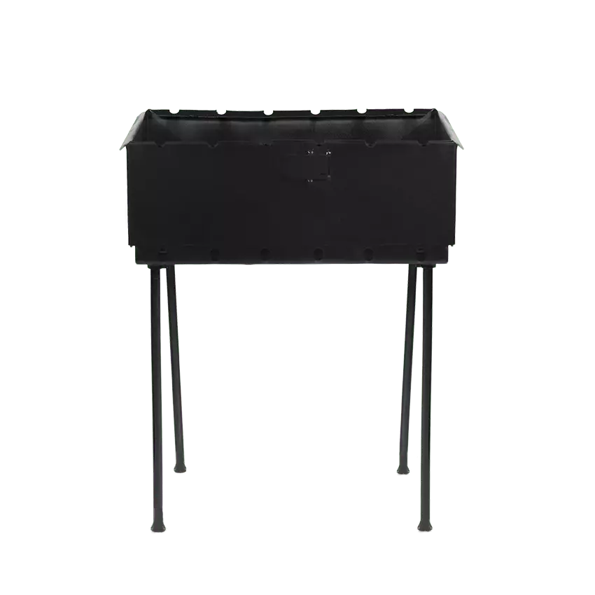 Складывается в виде чемодана с ручкой для транспортировки и съемными ножками для установки на земле.. В сложенном виде мангал чемодан не займет много места – его толщина всего 30 мм и вес – 6 кг.