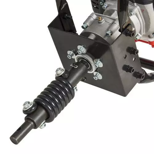 Редуктор виготовлений із міцного металу, має велику надійність та довговічність. Передавальне число 25:1 у відповідну кількість разів зменшує частоту обертання бура порівняно з обертами двигуна та збільшує крутний момент. Це дає змогу, маючи двигун з порівняно помірними потужністю й вагою, застосовувати досить продуктивні бурові шнеки. Під час зіткнення шнека з занадто твердими перешкодами й ударного зростання навантаження автоматична відцентрова муфта зчеплення припиняє передачу та оберігає двигун від перевантаження. Також для захисту двигуна під час ударів шнека об перешкоди застосований пружинний амортизатор.