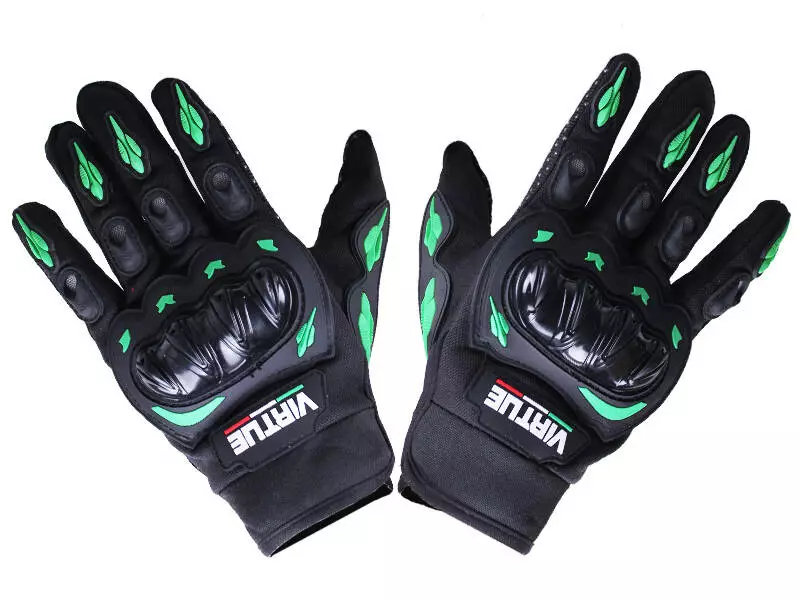 Мотоперчатки зеленые текстиль относятся к классу всесезонных моделей с защитой от повреждений при падении. В крое сочетается эргономичность и удобство. Мотоперчатки VIRTUE пошиты из упругого полиэстера. Ткань отталкивает воду и пыль. Эластичные волокна сохраняют форму при растяжении.Костяшки пальцев и фаланги прикрыты карбоновыми протекторами. Манжета стягивается по запястью хлястиком с вшитой липучкой-велкро. Со стороны ладони нанесено напыление ПВХ точечного типа и усилена по нижней части ладони пластиковым уплотнителем.