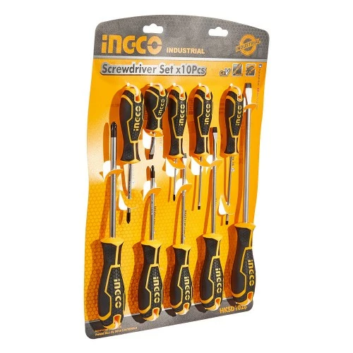 Набір викруток 10 шт INGCO INDUSTRIAL містить в комплекті шість викруток з прямим шліцом і чотири викрутки з хрестовим. Інструменти дозволяють закручувати й відкручувати різні кріпильні елементи.