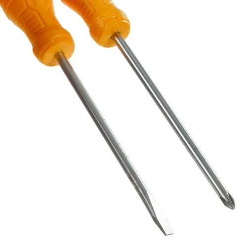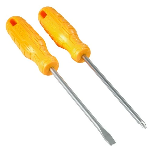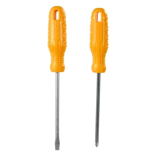Набір викруток 2 шт INGCO містить в комплекті дві викрутки з прямим шліцом. Інструменти використовуються для закручування і відкручування кріпильних елементів з різьбленням.
