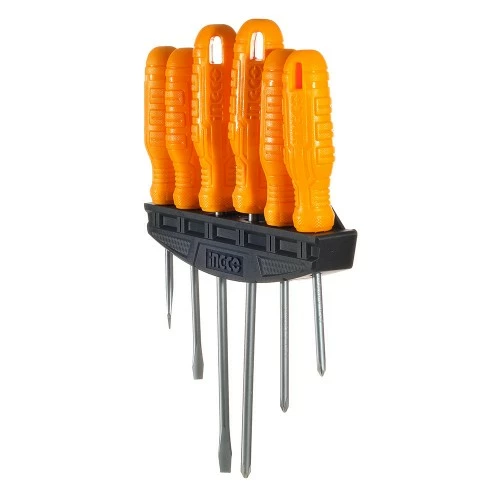 Набір викруток 6 шт INGCO містить в комплекті три викрутки з прямим шліцом і три викрутки з хрестовим. Інструменти використовуються для закручування і відкручування кріпильних елементів з різьбленням.