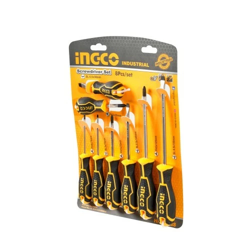 Набір викруток 8 шт INGCO INDUSTRIAL містить в комплекті чотири викрутки з прямим шліцом і чотири викрутки з хрестовим. Інструменти дозволяють закручувати й відкручувати різні кріпильні елементи.