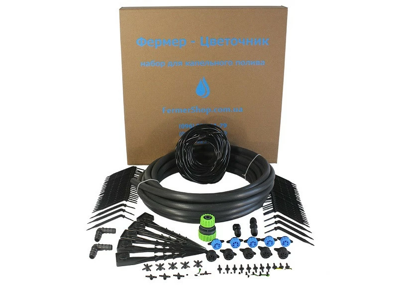 НОВИНКА! Набор “Фермер-Цветочник” предназначен для точечного полива, внесения жидких удобрений, эффективных микроорганизмов(Байкал, гуматы) через корневую систему декоративных растений, цветочных клумб, зимних садов и балконных вазонов. Забор воды и растворов идет из любой ёмкости или централизованного водоснабжения. Набор предназначен для подключения ¾ дюймовой поливочной шланге.