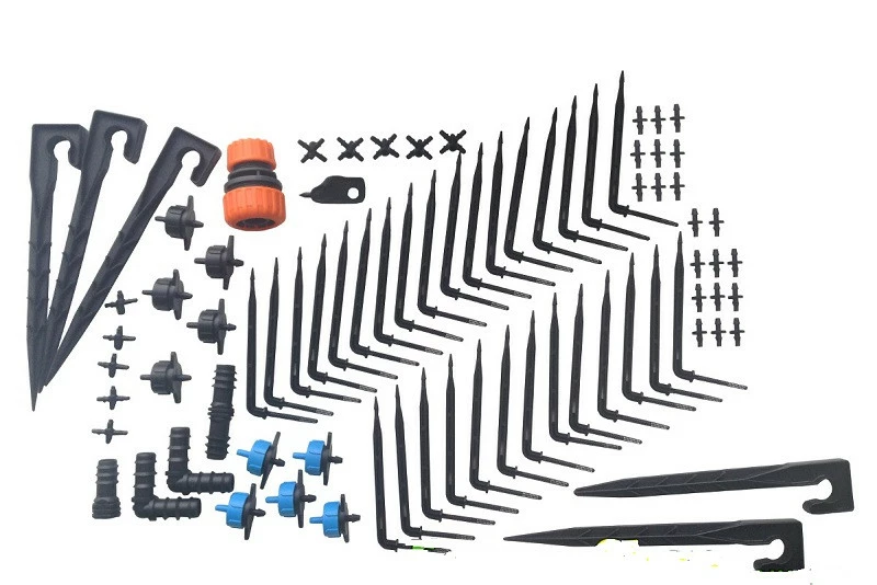- В комплект входят тонкие трубки диаметром 4 мм и спицевидные капельницы, подающие влагу непосредственно в зону размещения корней;