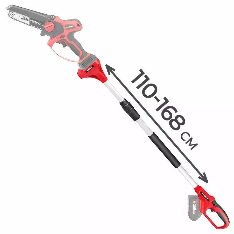 Телескопічний подовжувач WORCRAFT WER001 дає можливість використовувати пилу WORCRAFT CHS-S20LiBP та секатор WORCRAFT CSC-S20LiBP у якості висоторіза та обрізати гілки на висоті 3-4 метрів без використання драбини.