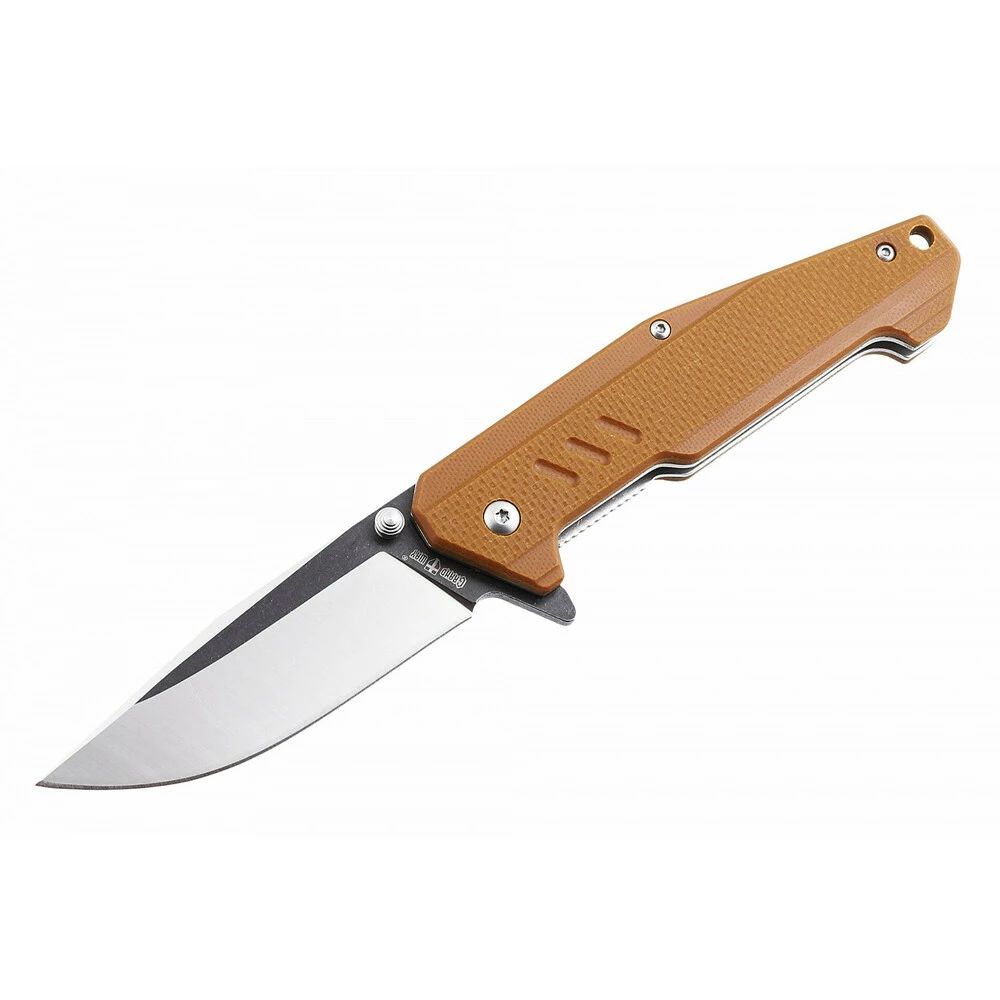 Приятную тяжесть ножу придают прочные стальные плашки рукояти и массивная фурнитура, скрепляющую клинок и рукоять. Открытая конструкция на винтах позволяет легко регулировать нож, ремонтировать и чистить. Прочному складному ножу нужен надежный замок – в этом ноже это хорошо себя зарекомендовавший линейный замок «Liner Lock». Замок надежен в своей простоте, отработан в производстве и крайне неприхотлив.