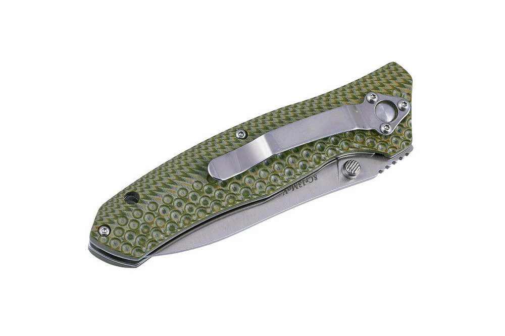 Шпеньки на клинке и конструкция замка позволяют открывать и складывать нож одной рукой. Наличие клипсы обеспечивает удобное постоянное ношение ножа с собой.