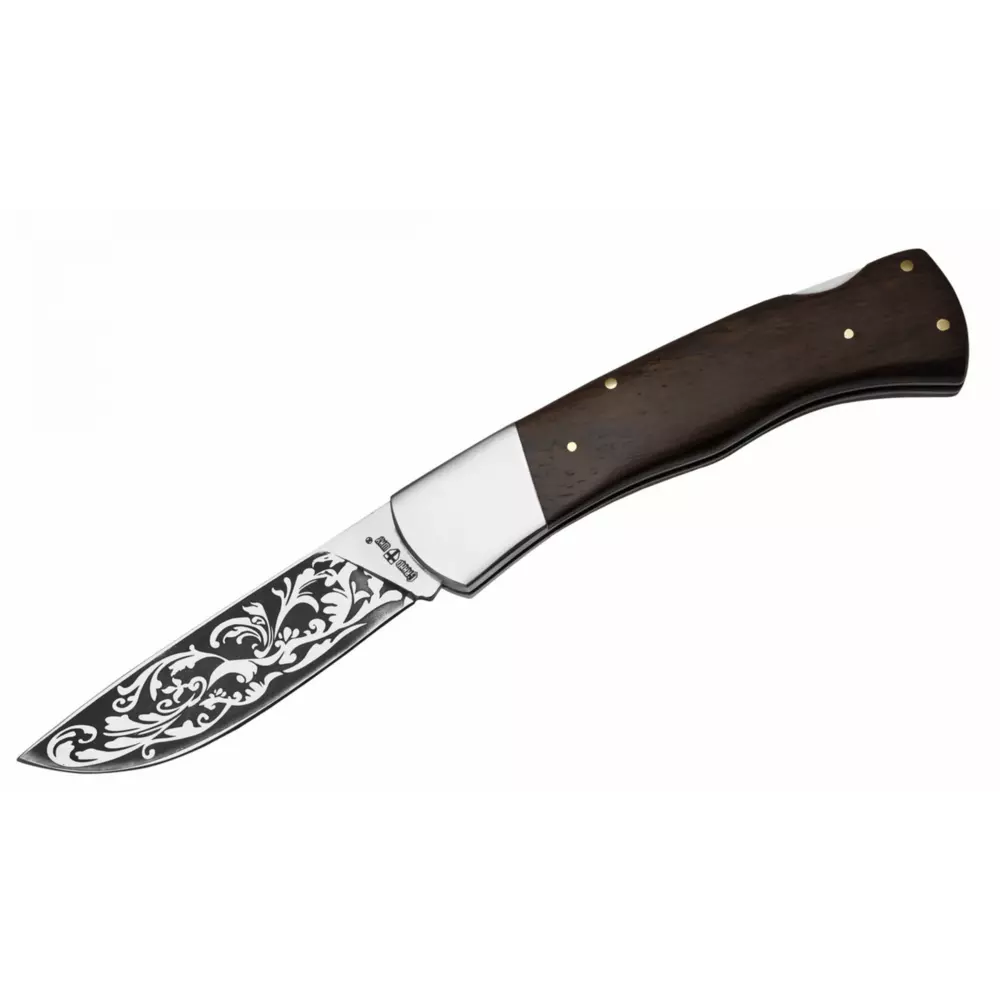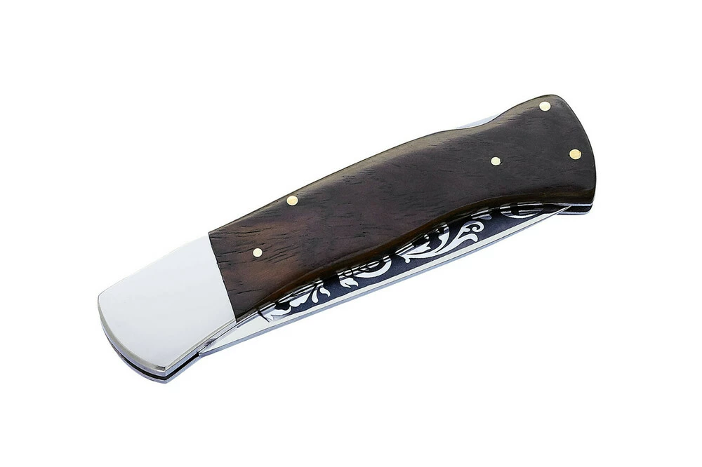 Нож складной Grand Way 5812 WKP – это классическая модель туристического ножа, дизайн которой выдержан в спокойном, традиционном ключе. Никаких новомодных композитных пластиков и порошковых сталей, никаких клипс и приспособлений для однорукого открывания. Только проверенные временем материалы: нержавеющая сталь 440С, палисандр, неразборная конструкция и замок бэклок.