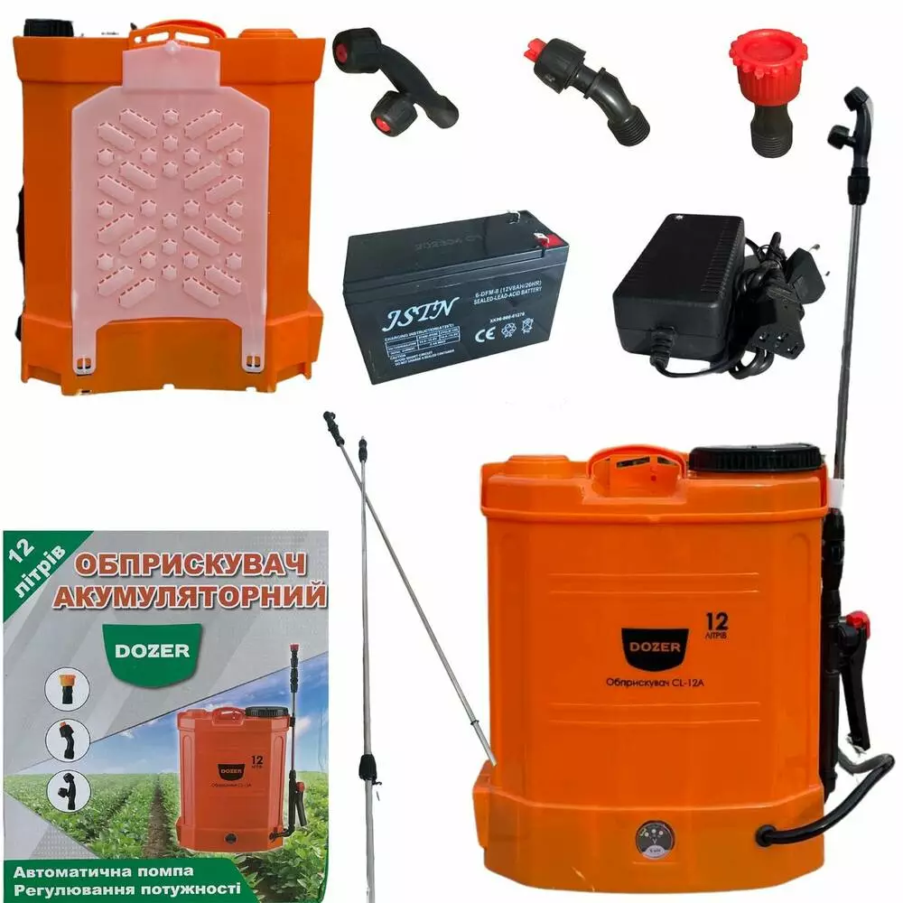 Оприскувач акумуляторний Dozer 12 л-безшумний та продуктивний обприскувач простий в обслуговуванні та експлуатації, завдяки застосуванню ємного (8 А/год) свинцево-кислотного акумулятора демонструє високі показники автономності (до 5 годин безперервної роботи на одному заряді АКБ), а бак збільшеного об'єму дозволяє обробити до 10 соток площі без проміжної дозаправки. Можливість регулювання продуктивності насоса значно розширює сферу застосування.
