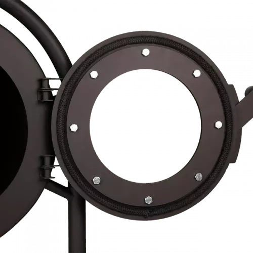 В дверцята вмонтоване жаростійке скло, яке дозволяє спостерігати за процесом горіння холодними, зимовими вечорами. Керамічний шнур, проклеєний по периметру дверей, забезпечує герметичне закривання печі.