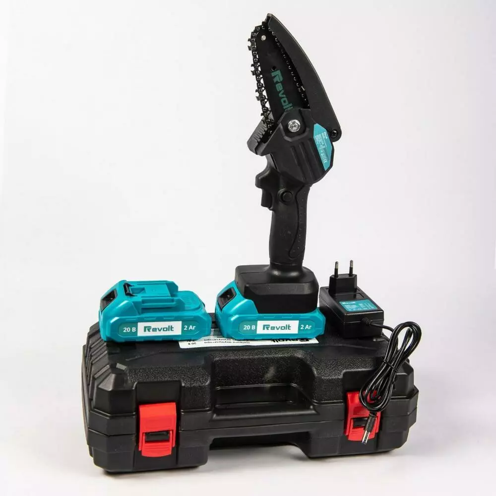 Характеристики Акумуляторна ланцюгова пила Revolt BCS 202 (20V) портативна міні-пила в кейсе 2 аккумулятори для обрізки дерев та розпилу дров