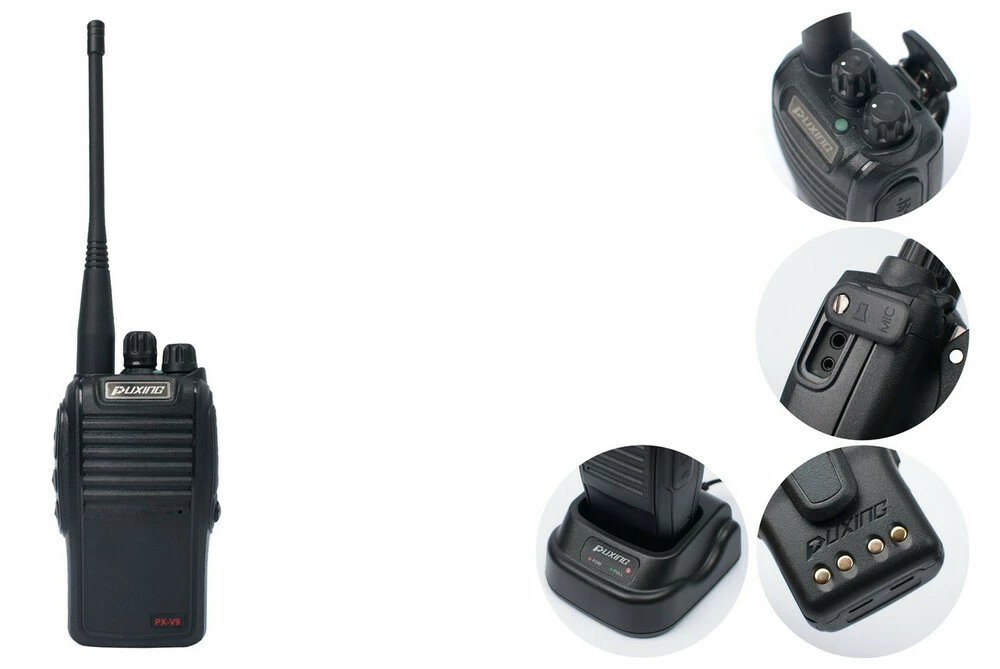 Радиостанция Puxing PX-V9 c пылевлагозащитой IP67 бюджетная модель, которая работает в UHF диапазоне 400-470 мГц. Она может похвастаться передатчиком мощностью 5 ватт и аккумулятором на 1200 мАч. Компания Puxing является одним из лидеров на рынке портативных радиостанций, и зарекомендовала себя как производитель качественного оборудования по доступной цене. Рации фирмы Puxing использует милиция Китая.