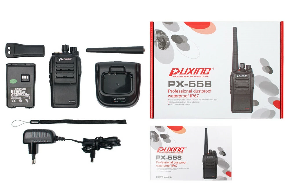 Радиостанция PX-558 UHF 1600MAH благодаря защите корпуса по стандарту IP67 отличается повышенной пылевлагозащитой, по этому ее можно использовать в экстремальных условиях, и даже при погружении в воду на глубину в 1 метр.