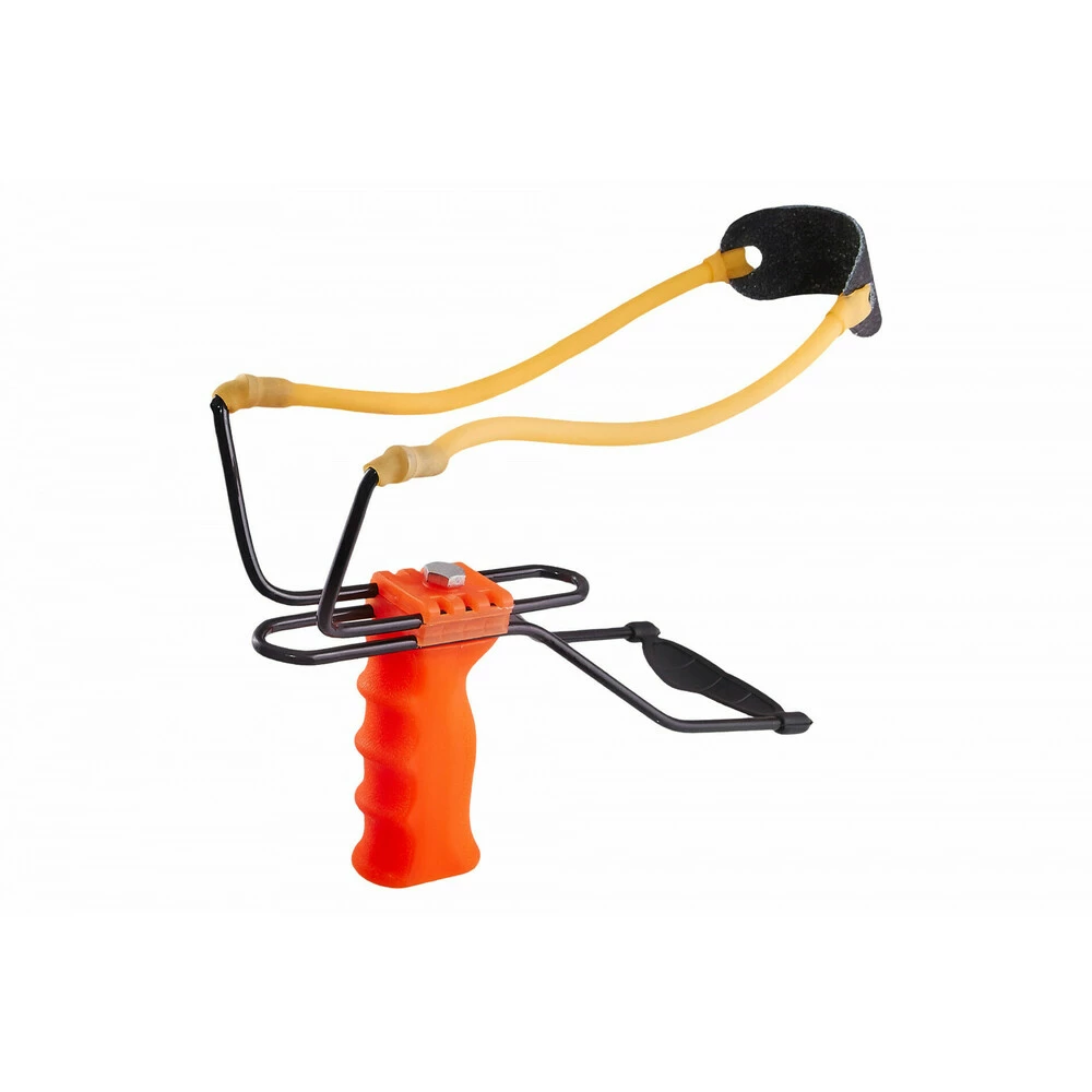 Рогатка 3061 повышенной прочности и эластичности, выполненный из хирургического латекса. Состоит из двух частей по 250 мм каждая. Спортивная складная рогатка имеет улучшенную конструкцию. Рукоять эргономичного дизайна изготовлена из пластика и имеет упор под запястье, для лучшей фиксации рогатки при стрельбе. Упор складной, что существенно уменьшает размеры рогатки. Имеется возможность регулировки упора по вылету, что делает рогатку применимой для взрослых и детей. Вороненый стальной рогач также может регулироваться по вылету, благодоря чему можно увеличить дальность стрельбы. Концы рогача загнуты на 90 градусов по направлению натяжении жгута, что уменьшает его износ. Дальность стрельбы, м: 150-180 Убойная дальность стрельбы до 30 метров Рекомендуется в качестве зарядов для стрельбы использовать стальные шарики для рогаток.