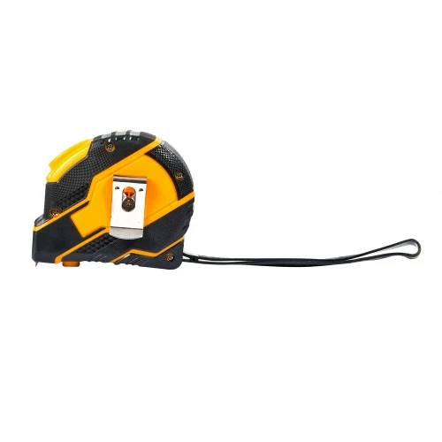 Надійний фіксатор на корпусі служить для зупинки та скручування стрічки. Для зручності у використанні корпус рулетки покритий гумою.