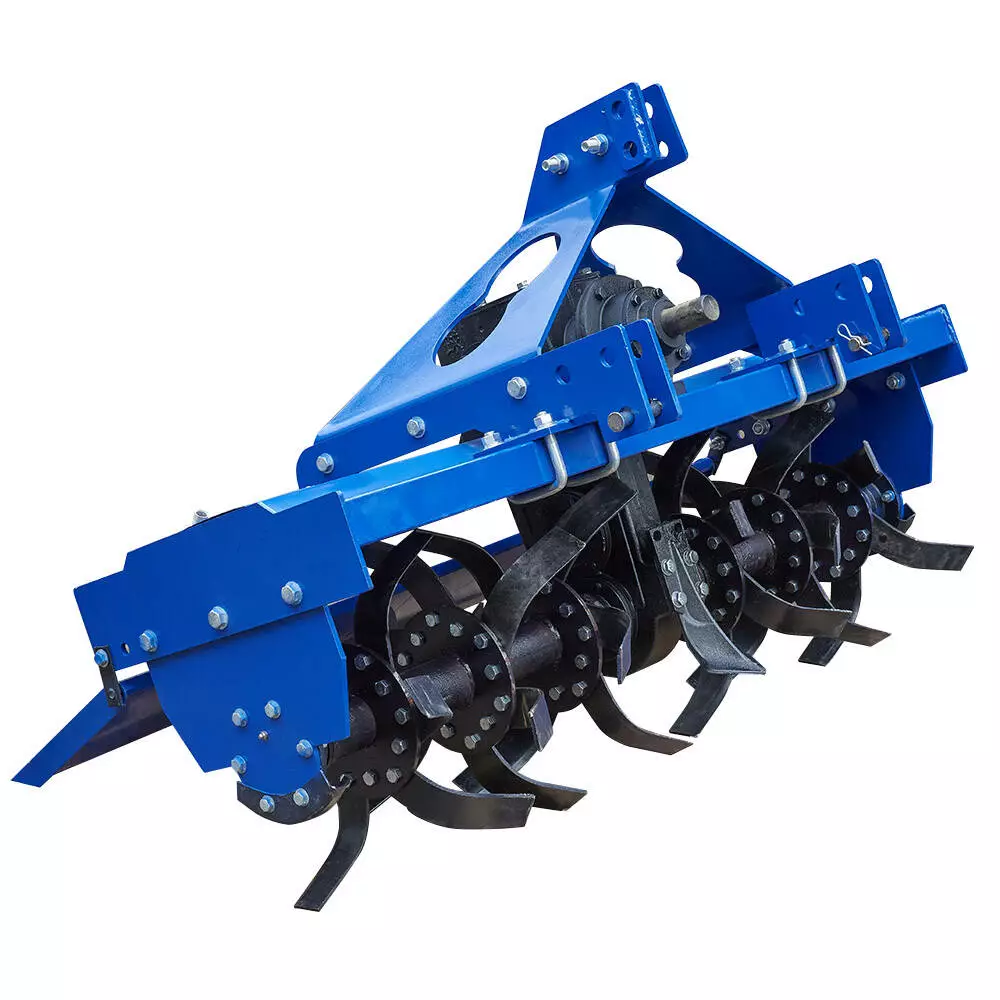 - Збільшена маса ґрунтофрези та збільшена кількість ножів дозволяє більш якісно та ефективно проводити подрібнення та перемішування ґрунту, на кожній секції фрези встановлено по 6 змінних ножів шаблевидної форми, 3 правих та 3 лівих ножа розташовані під кутом 120 градусів.