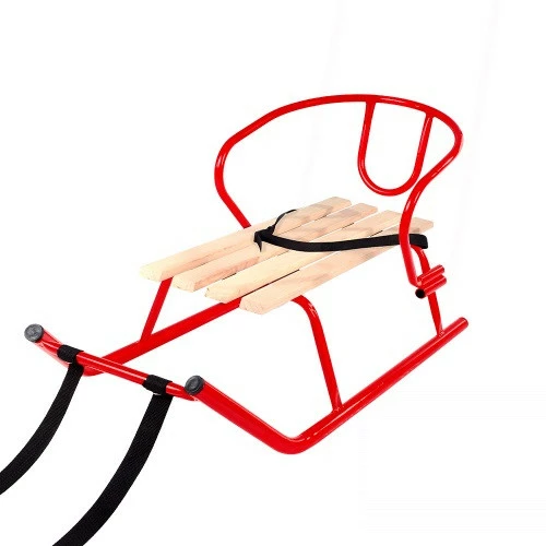 Цвет санок - красный, каркас металлический, сиденье выполнено из
