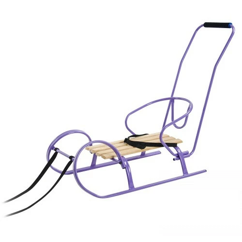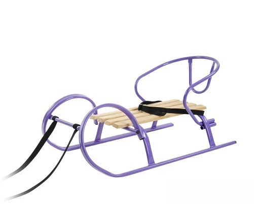 Цвет санок - фиолетовый, каркас металлический, сиденье выполнено из