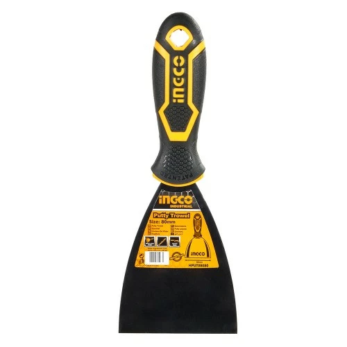 Шпатель 80 мм INGCO INDUSTRIAL використовується при малярних і оздоблювальних роботах з метою нанесення і розрівнювання будівельних і клейових складів.