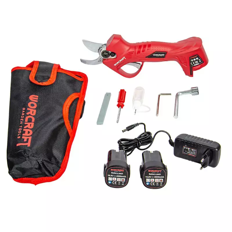 - Потужний 16 В акумуляторний секатор робить швидку і якісну обрізку гілок без особливих фізичних зусиль.