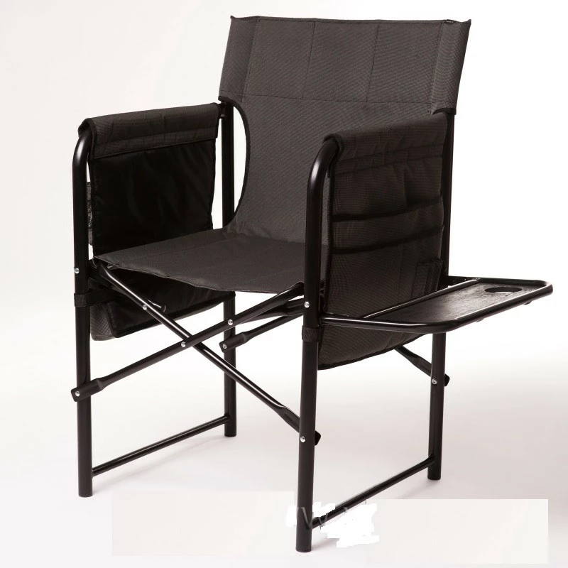 Стул "Режиссерский с полкой" для рыбалки и отдыха с устойчивой полкой из металла и бакелитовой влагостойкой фанеры. Кроме всего имеются вместительные карманы,прочная конструкция, комфортное сиденье, удобная широкая спинка, уплотнённые боковины и подлокотники.