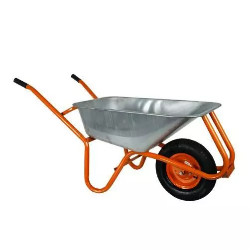 Тачка одноколесная Vitals 100/180-2 от TM с кузовом из оцинкованного металла подойдет для строительных и садовых работ.