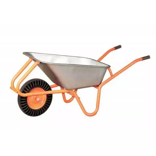 Тачка одноколесная Vitals 100/180-2 от TM с кузовом из оцинкованного металла подойдет для строительных и садовых работ.