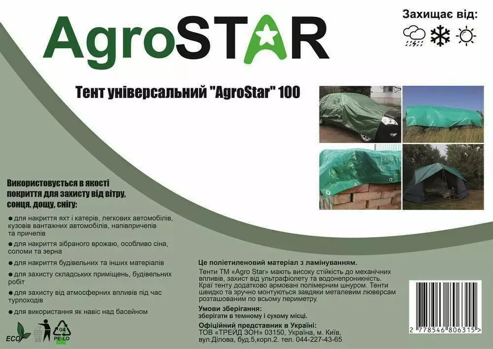 Тент універсальний"AgroStar" 100(4х6 м)зелений