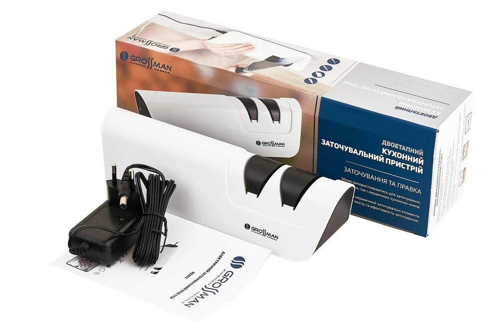 - абразивные элементы гарантируют равномерное затачивание клинков кухонных ножей.