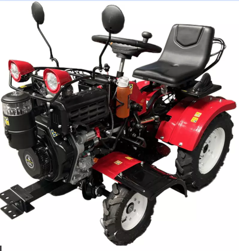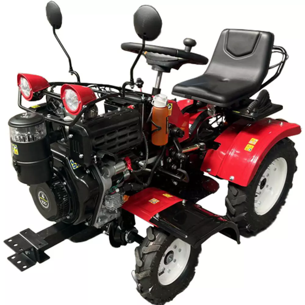 Трактор дизельний KENTAVR 10D нова модель з повнопривідною ходовою частиною, комплектується пневмоколесами та грунтозачепами з фрезами.