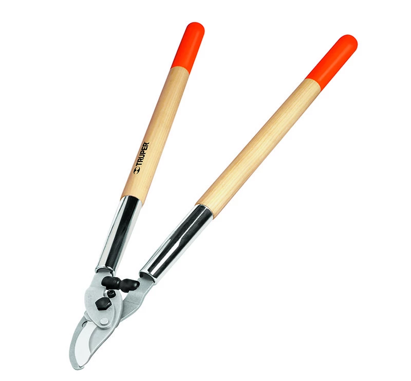 сучкорез с деревянными ручками, удобен при работе с мелкими ветками и сучками диаметром до 44мм. Лезвия крепятся между собой не так как у обычных ножниц, а через планку, по принципу болтореза, что облегчает перекусывание особо твердых веток. Обрезиненные рукоятки хорошо приятно ложатся в кисть и не скользят даже если Вы взялись за них мокрыми руками. Установлен резиновый демпфер для удобной работы.